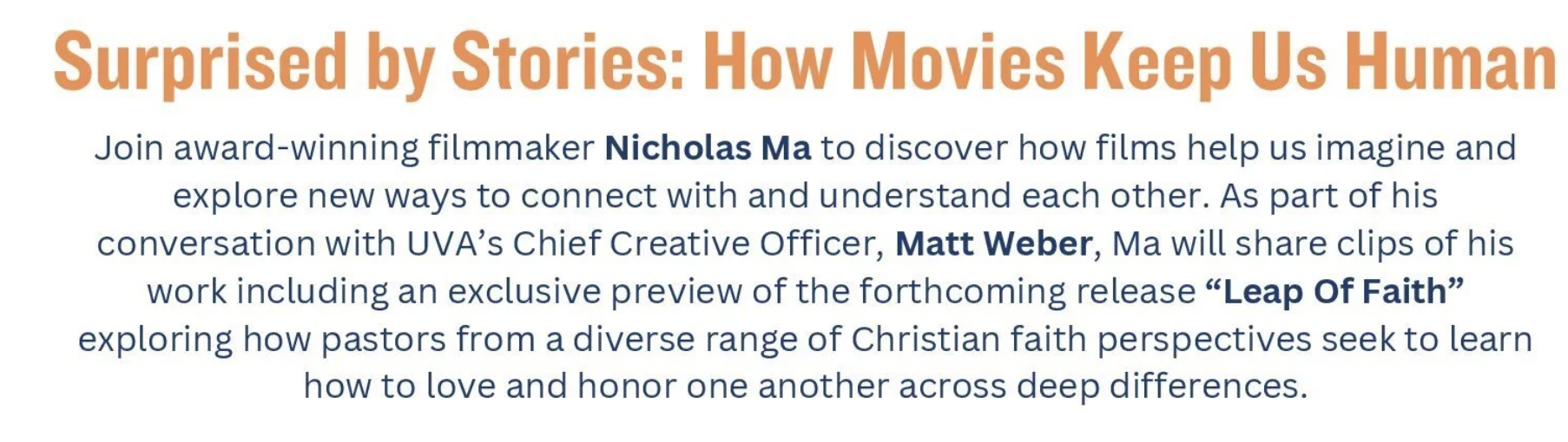 UVA Arts catalyzes and facilitates research, creative production, and service in the arts departments and schools and with numerous affiliates, partners, and community and student-driven arts organizations at the University of Virginia. Learn more at https://arts.virginia.edu